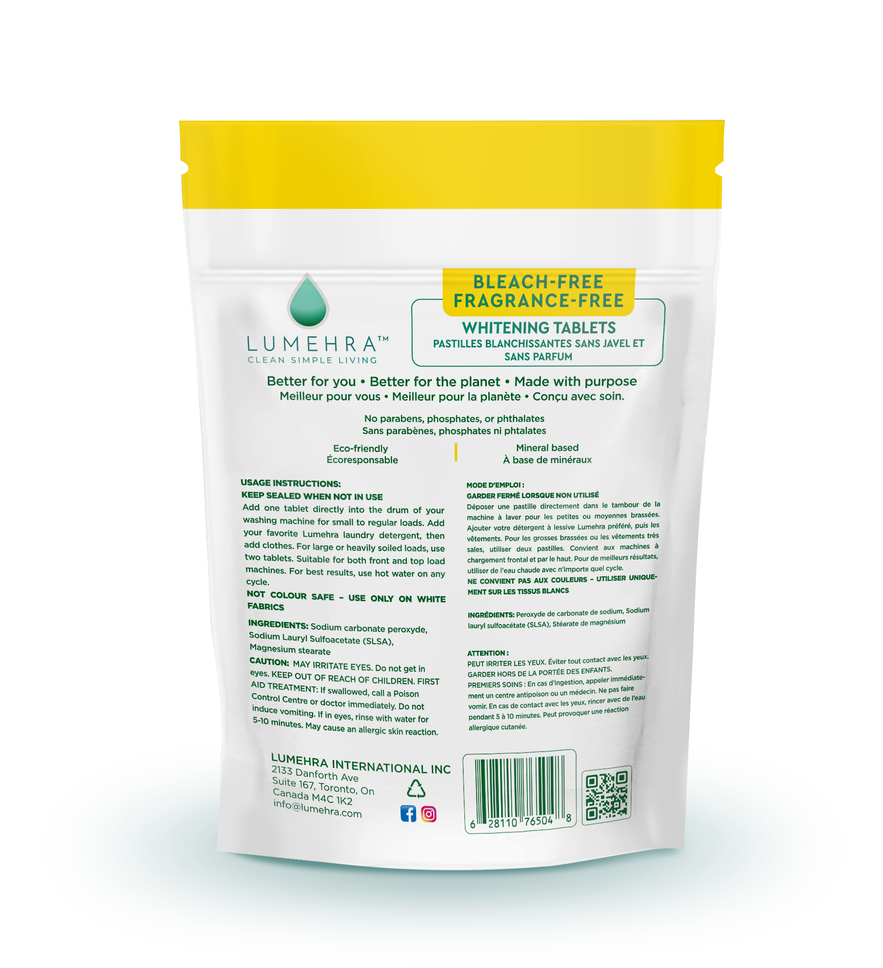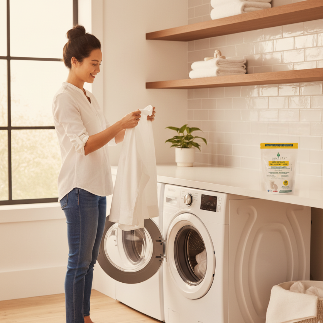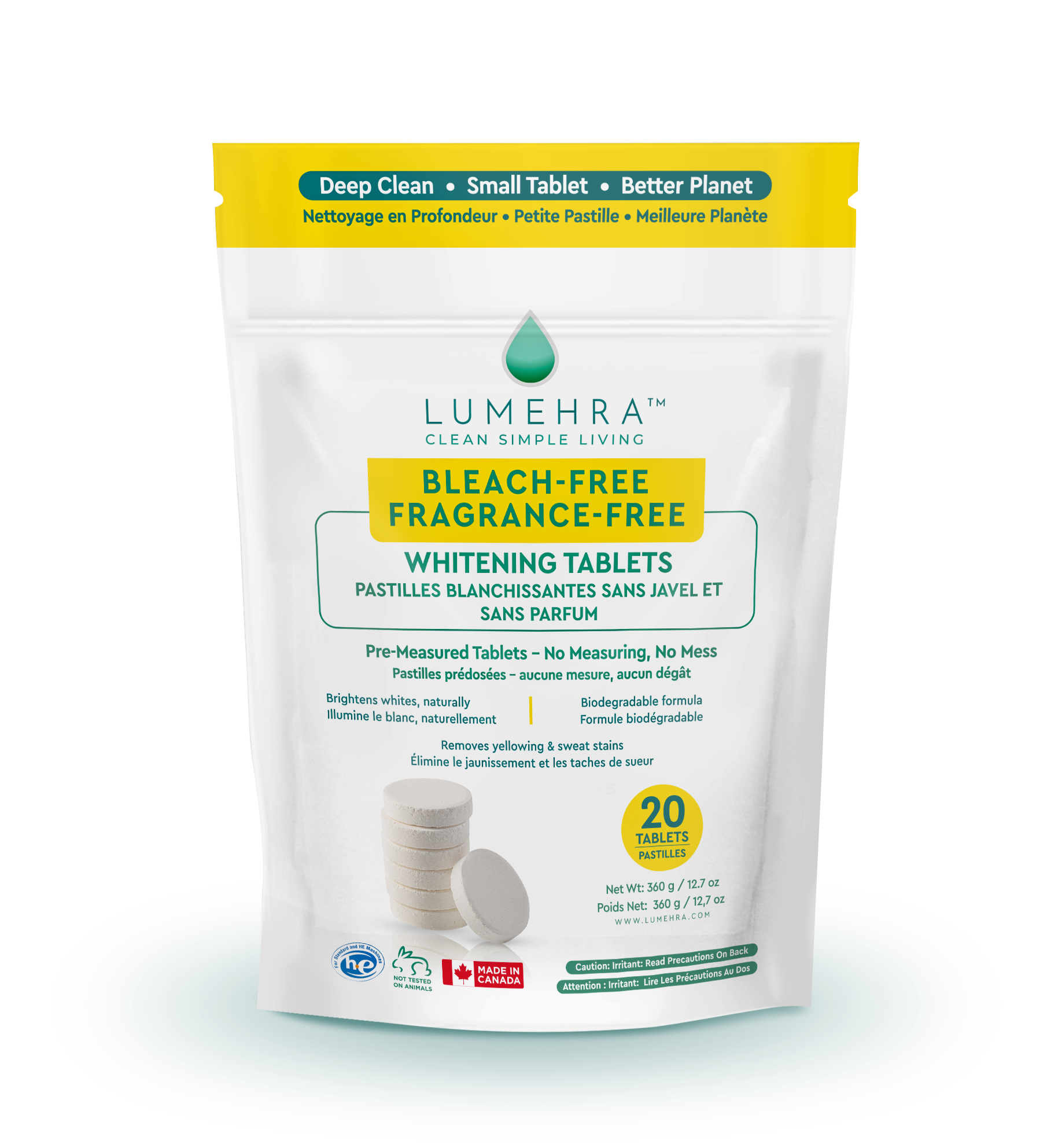 Brighten your laundry without the harsh chemicals. Lumehra’s Fragrance-Free Bleach Alternative Tablets are a safe, eco-friendly way to restore brilliance to your white fabrics—without the smelly, toxic fumes of traditional bleach.